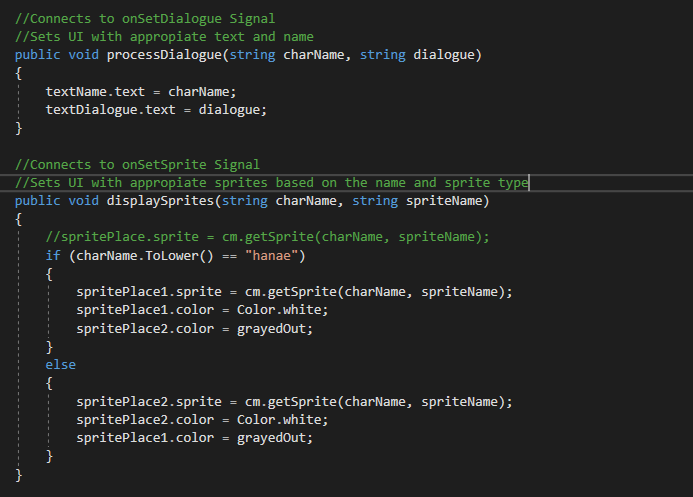 Each dialogue file contained tags for character names, sprites, and emotions, which were processed by the Dialogue Manager.