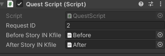 This modular approach made it easier to manage quests and update the game state. Each Quest Object has a quest ID and two dialogue INK files,
