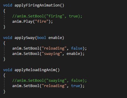 I realized I was calling the “play sway animation” method continuously while the player was moving. To fix this, I introduced a `isMoving` boolean.