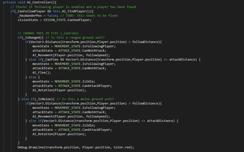 I also added a state system to handle transitions between idle and chase states, making the AI feel more dynamic.